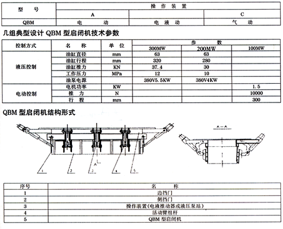 QBM型啟閉機(jī)安置在鍋爐渣井下部,在撈渣機(jī)正常工作時(shí),作爐底密封。在撈渣機(jī)旁出現(xiàn)保障,需檢修時(shí),關(guān)閉此門,作臨時(shí)儲(chǔ)渣及爐堂密封。